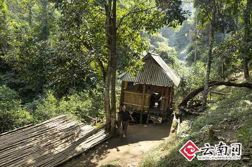 大概走了七、八公里之后,我们便到了半坡老寨,下车后,便开始了近两公里在原始森林小道里的穿行,开才总是走在后面,我以为他走得慢,故意等他一下,谁知他哈哈一笑,说你们不用等我,你们走多快我就走多快,听到这话,老柳插话说:“开才说得没错,这茶地就数他家的远”,他天天都在锻炼,当地没有人的脚力比得过他。这时,我才知道我错估了“形势”。