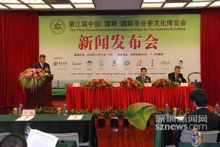 深圳市贸促会副会长陈先生、中国茶叶流通协会会展部主任朱先生、深圳市贸促会展览部部长钟先生及副部长方先生、深圳市某公司总经理杨先生以及特邀嘉宾湖南省某茶业公司深圳总经销刘先生出席了此次新闻发布会。