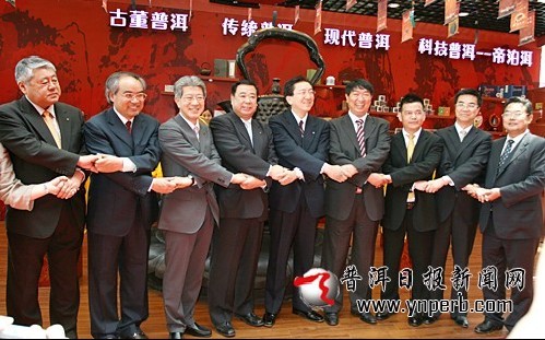 云南普洱市委书记沈培平,云南普洱市委常委、市委秘书长鲁斌,云南普洱市委常委、市政府副市长盛军,云南普洱市政府副市长寸强,日本岩手县知事达增拓也,日本岩手县盛冈市市长谷藤裕明,日本岩手县奥州市市长小沢昌记,上海大可堂企业机构董事长张奇明,天士力帝泊洱销售有限公司总经理李强,云南普洱市有关部门负责人,云南柏联普洱茶庄园有限公司、普洱永年茶业有限公司和上海有关企业负责人及嘉宾到场参观祝贺。
