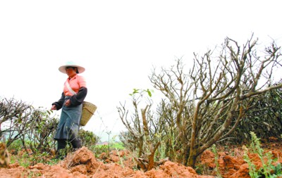 据报道,在云南省云县茶坊乡这个以茶为名的地方,往年这时候应该是春茶飘香的季节,但现在这里已经没有人们热火朝天采摘春茶的景象了。由于今年的这场大旱,茶树即便已经发出来的一些芽,也已晒死、枯萎。有的茶农每天都要到茶园去看看茶树的情况,但却常常无功而返。而在云南普洱茶的另一个重要原产地西双版纳州,持续高温少雨也让茶园受损不少。据报道,由于持续干旱,全州有39.5万亩的茶园受灾,预计造成全州春茶减产2100吨以上,产值损失1.33亿元,茶叶不仅叶片小而枯黄,而且产量也特别的少。