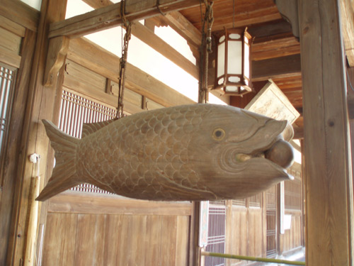 “木鱼”一词,最早大概见于1019年问世的《释氏要览》中。元代重修的《百丈清规》中说:“鱼昼夜醒,刻木,象形,击之,以警昏惰。”可是宋元时期的木鱼,只是鱼形的木具,主要用于寺院中入堂、斋粥等时集聚僧众的场合,并非今日所见的用于诵经的圆形木鱼,后者大约出现在明代。此后便将用于集合的木鱼称为“鱼梆”或者“鱼板”。1981年日本平凡社出版的《世界大百科事典》中说:“在承应年间(1652-1655),黄檗禅来到日本时,传来了木鱼,以后广泛用于禅、天台、净土等各宗之间。”原来诵经用的圆圆的木鱼是隐元等黄檗僧人传到日本来的!换言之,日本在17世纪中叶之前是没有木鱼的。而今日的中国差不多已经消失的“鱼梆”或“鱼板”,万福寺内倒是依然留存着,不仅留存着,且依然在使用,只是当年的原物已经十分珍贵,有些鱼板已经敲得字迹模糊,今天日常所用的,大都是新近制作的。万福寺鱼板上所刻写的文字,颇为有趣,抄录如下: