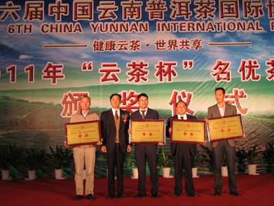2011年4月22日上午,第六届中国云南普洱茶国际博览交易会在昆明开幕,中国国内外200多家企业、数千人参展,台湾云南普洱茶投资考察团也首次参加此次中国云南普洱茶国际博览交易会。在开幕式中,组委会评选出了2011年“云茶杯”名茶金银铜奖。