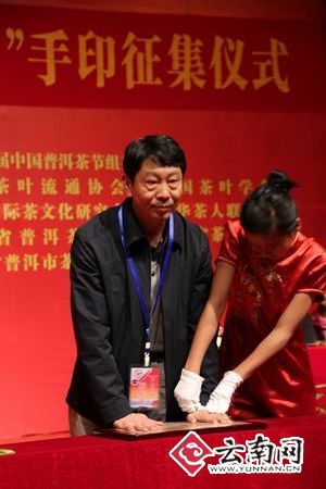 云南省普洱茶协会会长、原云南省人大常委会副主任、第四届全球“中国云南普洱茶十大杰出人物”副主任评委张宝三介绍说,为了让全球“中国云南普洱茶十大杰出人物”留下珍贵的历史印迹,中国云南普洱茶节组委会决定举行全球“中国云南普洱茶十大杰出人物”手印征集,至今,已征集齐前三界25名全球“中国云南普洱茶十大杰出人物”的手印。