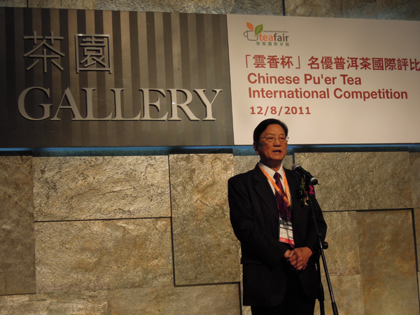 中国云南普洱茶国际评鉴委员会执行主任、云南省普洱茶协会会长张宝三作首届“云香杯”评比总结发言。