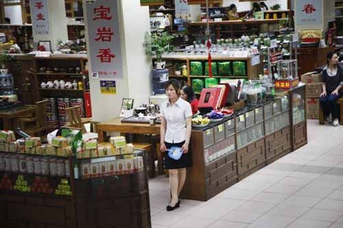 北京马连道茶城,等待顾客上门的营业员。中国周刊记者
