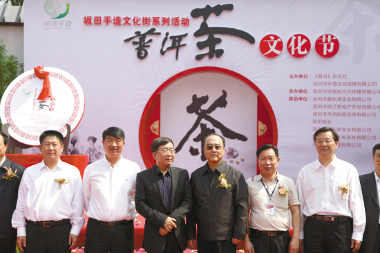 深圳市政协主席白天(左四),知名学者余秋雨(左三),云南普洱市委书记、北京市云南普洱茶研究院院长沈培平(左二)等出席首届云南普洱茶文化节