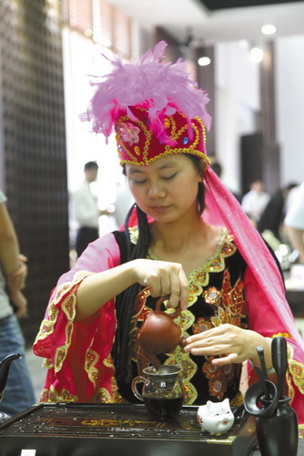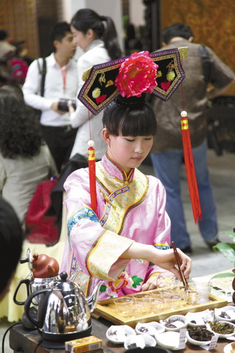 据介绍,此次活动包含道茶、鉴茶、戏茶、禅茶、竞茶等几个环节。在昨日上午的“鉴茶”活动中,数十位茶艺师在活动现场为广大游客煮茶沏茶,以供品鉴。同时,汇集了1895年~1949年间的古董茶系列、1950年~1973年间的印级茶系列、1974年~1989年间的七子饼系列等精品云南普洱茶以及70余套顶级茶皿的茶展将对公众开放。出席活动的众多茶专家表示,百余年间所有年份的云南普洱茶共聚一堂对外展示,这在全国范围内尚属首次。