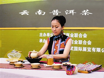 本届茶博会一大特点是,云南普洱茶参展团唱主角、少许黑茶作为配角点缀而形成了云南普洱茶特色茶类大军浩浩荡荡,几乎占据了参展商的近一半。天津市茶叶协会秘书长谭肇荣表示,云南普洱茶第一功能就是“解油腻”与“刮肠通泄”,云南普洱茶的兴起必须有社会与经济的前提:即社会走向富裕,人们开始寻求更高一级的保健与养生方式,并通过这种方式满足人们更高层次的物质与精神需求。云南勐海某某茶叶公司负责人金先生对记者说,目前云南普洱茶在天津市场占有的份额还不算大,但从另一方面也说明天津市场还有很大潜力。就他们一家此次带来的2007年以来的云南普洱茶生茶、云南普洱茶熟茶产品,在茶博会上有数万元的销量,对提升其品牌知名度很有帮助。