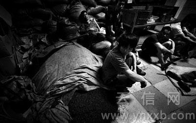 只见这个500余平米的空间被隔成了许多个小间,一堆堆布满灰土的茶叶原料随意地倒在地上,一个个成品茶饼整齐地排在架子上,另一个房间里,一捆捆各类名牌茶叶的包装纸以及说明书排放在一边,室内烘烤、压茶等制茶设备一应俱全,十余名工人躲在一边,其中有两三张未成年人的面孔。