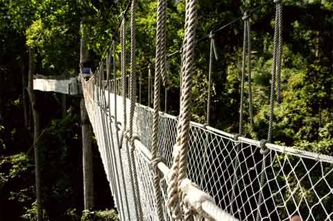 望天树景区是游客经常去的景点。该景区位于云南勐腊县城东北补蛙国家自然保护区内,景区内的“空中走廊”一定要试一下,走廊长2.5公里,高20米,是用粗大的铁索在高大的望天树之间连接建成的,够胆量就上吧。
