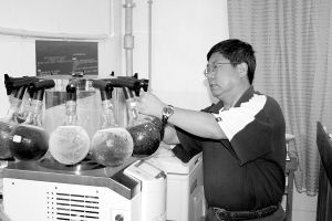 马博士正在将天然养生植物原料的精华素进行冰冻干燥。