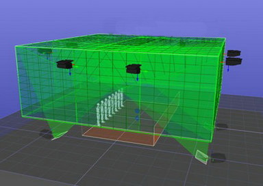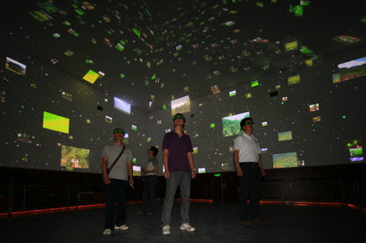 12台巴可WUXGA的Galaxy NW-12投影机组成,采用主动立体方式,通过360度全景立体技术的展示。多人多角度,触手若可及,融合了梦幻与现实,集成了传统与现代。