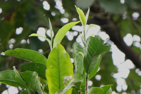 贺开古树茶,芽叶肥大,显毫,灰白条,是其春季干茶外形特征,看看长在古茶树上的叶片