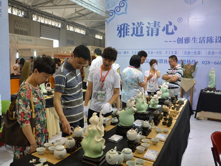 由中华茶人联谊会宜兴紫砂分会组建的宜兴紫砂展团,将有近百人临会参展,他们中既有资深的著名陶艺家和中高级工艺美术师,也有一批中青年精英和骨干,将带来了自己创作的新品和精品3000余件,包括清代宜兴均陶葛窑传人葛辰柏的无极斋紫砂艺坊作品,以及被评为中国收藏家喜爱的紫砂艺术大师赵明敏女士作品。这些作品不仅原料纯正、工艺精湛而且具有较高的文化艺术含量,其中许多作品曾在评审中获过大奖,消费者可以放心购买。