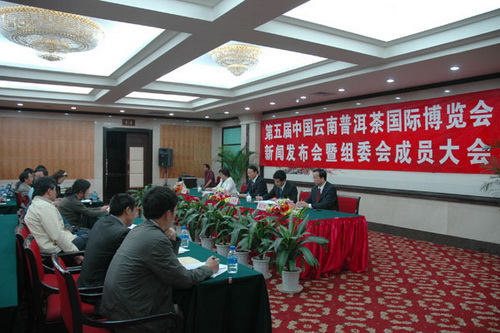 第五届中国云南普洱茶国际博览交易会新闻发布会暨组委会成员大会于4月7日在昆明国际会展中心举行