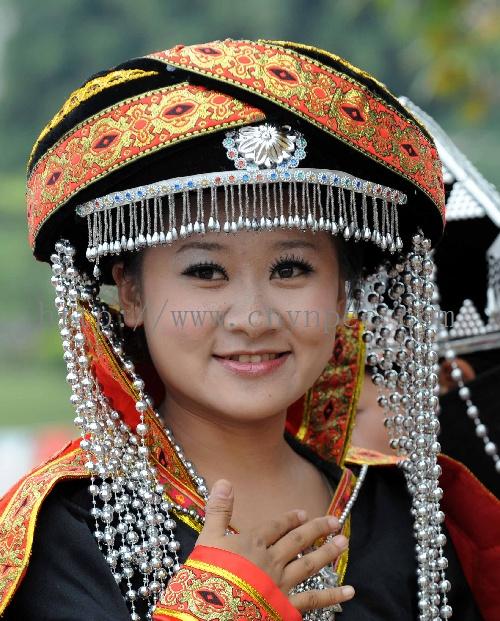 4月27日·几名佩戴少数民族头饰的漂亮姑娘在节庆活动上。