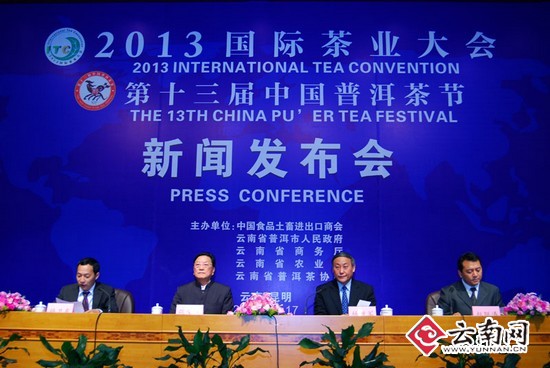 云南网讯·2013国际茶业大会暨第十三届中国云南普洱茶节(简称 “一会一节”)将于明年5月25-27日在云南省普洱市举行, 12月17日中国食品土畜进出口商会副会长杨胜军在昆明新闻发布会上作上述宣布。