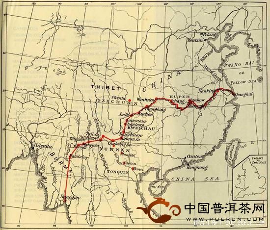 Morrison乘船从上海起行经过中国内地四川的重庆、宜宾、又经云南的昭通、昆明,最后到达缅甸首都仰光,书中考察了大量的中国内地风土人情,作者报着侥幸的态度看看能不能从中找到点历史上有关云南普洱茶的蛛丝马迹。果然,作者的茶缘一直不错,在书中发现不少关于云南普洱茶和马帮的片段。