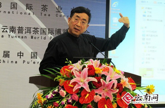 中国文化大师余秋雨先生在云南普洱茶国际论坛上发表主题演讲。