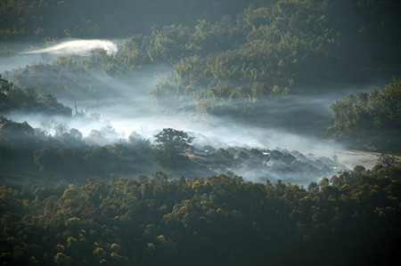 一、云南勐海,傣语地名,傣语译名为勇敢者居住地方。这里,山叠嶂,魅力无穷;水纵横,柔情无限;雾蒙蒙,灵动无边。许多探秘者蜂拥而来,似乎只有勇敢地走进莽莽森林,攀上高峰,穿过那茫茫云雾,才能揭开这神秘的面纱,融入那令人向往的神奇和美丽。