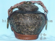 云南普洱茶·工艺茶异形压制·云南普洱茶罐-皮艺装饰16cmx20cm