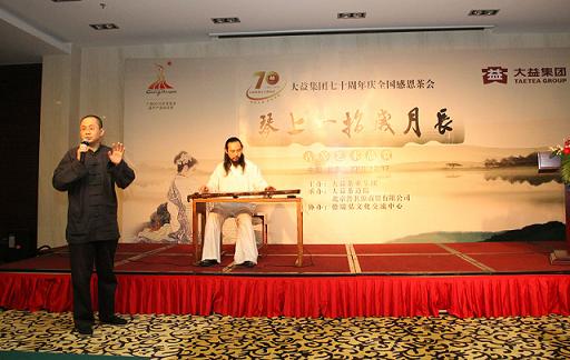 2010年10月17日,云南大益集团·勐海茶厂70周年庆全国感恩茶会之“琴上一指岁月长”在北京五环大酒店拉开帷幕,这场茶会由大益茶授权经销商北京某公司承办,某茶庄创始人陈先生,雷音琴院院长邵天泽,北京各个企事业单位、教育界及新闻界等近200名大益茶爱好者参加。云南普洱茶早已成为众多饮茶者最喜爱的饮品之一,此次感恩茶会的举办,为北京的大益茶友们搭建了一个雅聚及交流的平台。