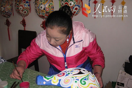 来自陕西的中国马勺脸谱艺术嫡系传人李舸现场制作