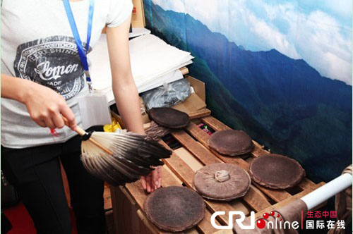 云南普洱茶信息网中国信息频道消息:中国云南普洱茶,因产地旧属云南普洱府(今普洱市),故得名。由于云南普洱茶养生、抗癌,减肥等等功能,其魅力经久不衰。在第二届中国国际茶业及茶艺博览会上,展商向观众现场展示了云南普洱茶古法石磨制茶法,让很多观展市民对云南普洱茶制作工艺有了更近一步的了解。