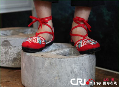 用石磨进行压制,为了能得到更紧密的茶饼,制茶师更是直接踩在了石磨上以增加重量。