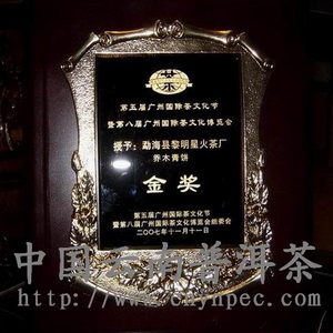 2007第五届广州国际茶文化节暨第八届广州国际茶文化博览会金奖•乔木青饼•(云南勐海精制茶品)
