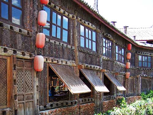 纳西文化:青瓦白墙,人字屋架,既有“四合五天井”、“三坊一照壁”的典型院落,又有依山就势的变异和不规则体,闲适惬意,并不因小而牺牲人文情调。
