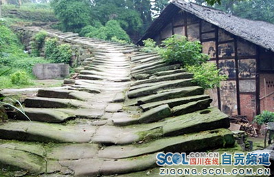 位于自贡市贡井区筱溪街道,坐西北向东南。建于清代,占地面积3000平方米。此盐道用长0.8米、宽0.4米(长方形)的石板铺砌,全长约1500米,宽1.5至2.1米。现保存528米长路段,其中原貌石板路80米长,部分改建为混泥土或水泥路面作为社区通道,盐道两边的店面大多保存了原始风貌。系盐商们集资修建为转运贡井旭水河两岸的盐巴服务,苟氏坡盐道在历史上为贡井的盐业运输作出了重大贡献至今作为社区通道发挥着交通作用,具有一定的文物保存价值。 |