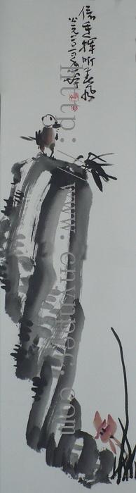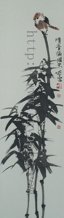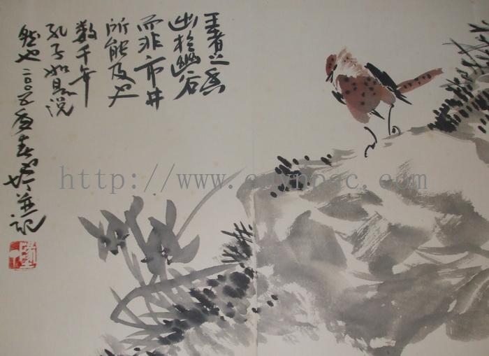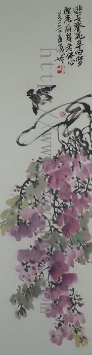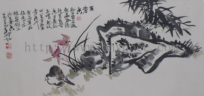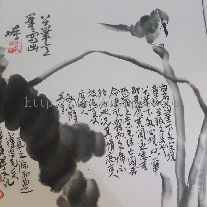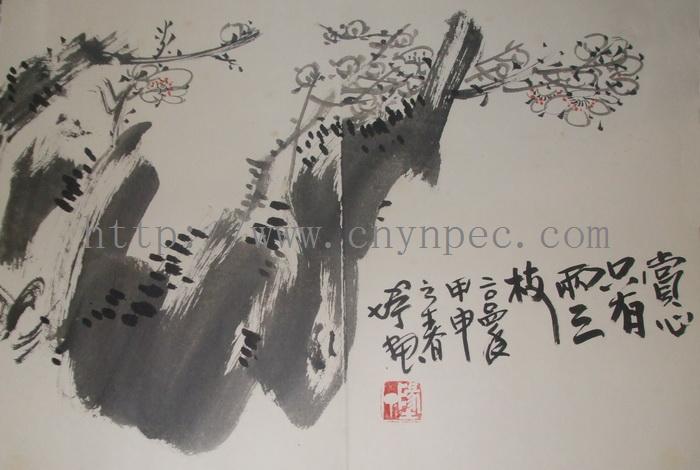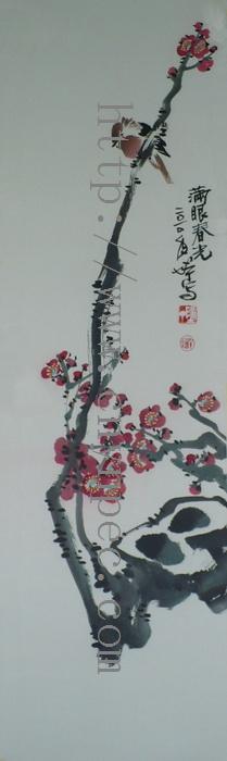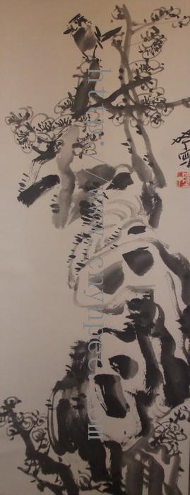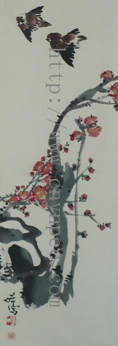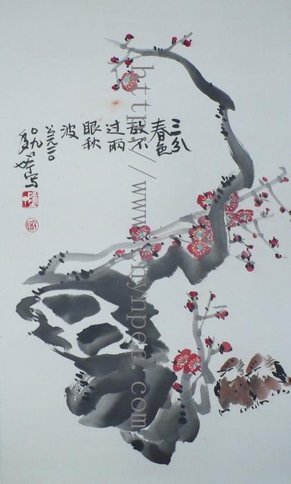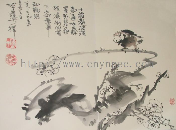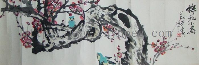 云南普洱茶信息网推荐·茶人书画家·地丁先生作品·梅花小鸟·横幅
