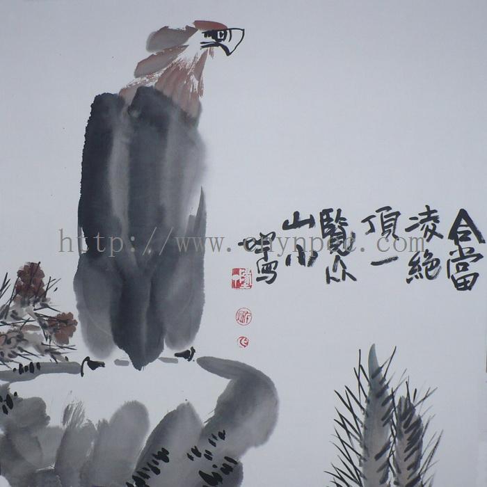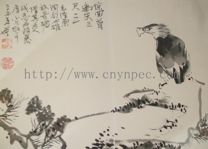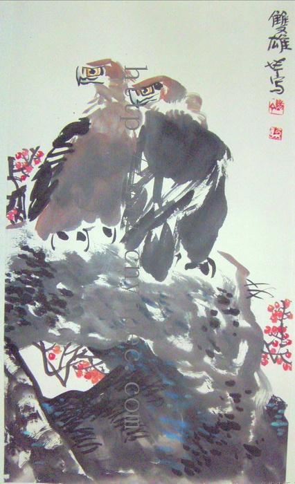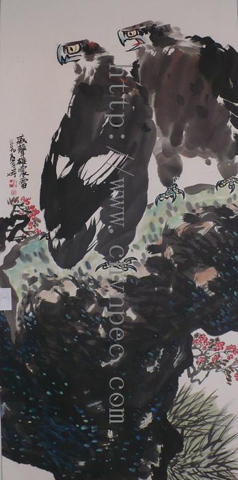 云南普洱茶信息网推荐·茶人书画家·地丁先生作品·双雄鹰图·中堂