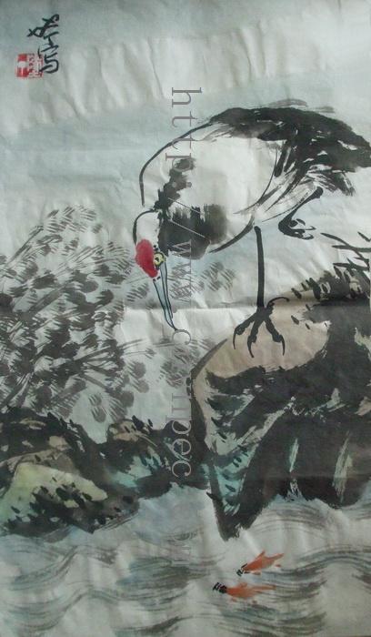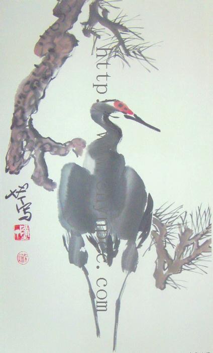 云南普洱茶信息网推, 荐·茶人书画家·地丁先生作品·松鹤图·中堂