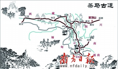 “茶马古道”是云南、四川与西藏之间的古代贸易通道,起源于古代的“茶马互市”,由于是用川、滇的茶叶与西藏的马匹、药材交易,以马帮运输,故称“茶马古道”。“茶马古道”连接川滇藏,延伸入不丹、锡金、尼泊尔、印度境内,直到抵达西亚、西非红海岸。根据现有的古文物及历史文献资料,早在汉唐时,这条以马帮运茶为主要特征的古道就发挥作用了(宋代在四川名山等地还设置了专门管理茶马贸易的政府机构“茶马司”)。抗日战争中,当沿海沦陷和滇缅公路被日寇截断之后,“茶马古道”成为中国当时唯一的陆路国际通道。