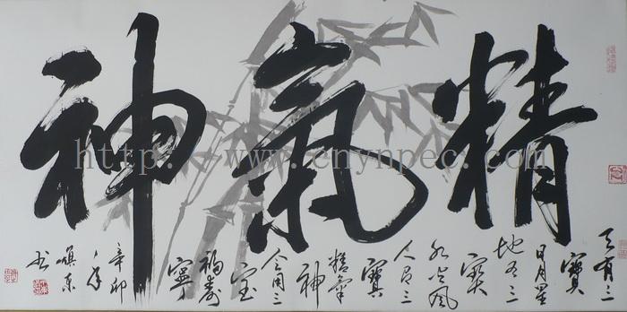 云南普洱茶信息网推荐·茶人书画家·耕田之子·丁焕东先生作品·精气神·横幅