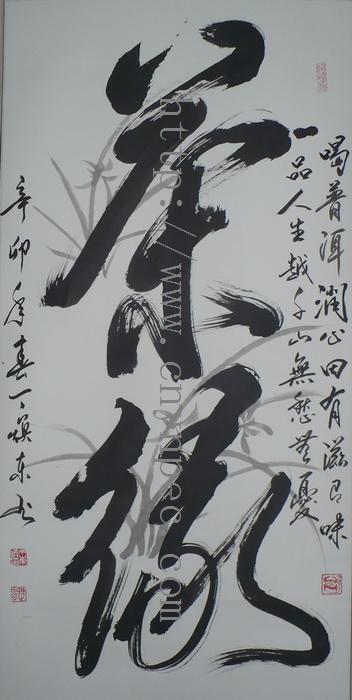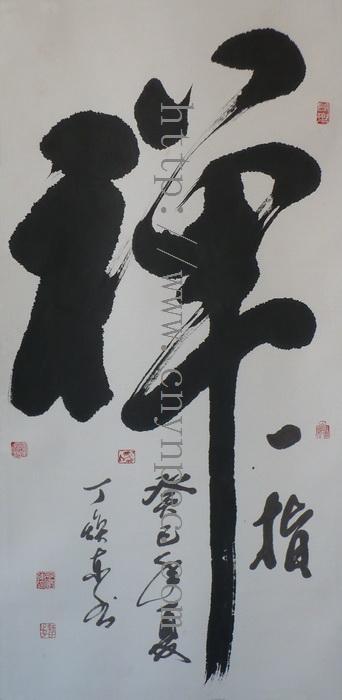 云南普洱茶信息网推荐·茶人书画家·耕田之子·丁焕东先生作品·禅一指·中堂