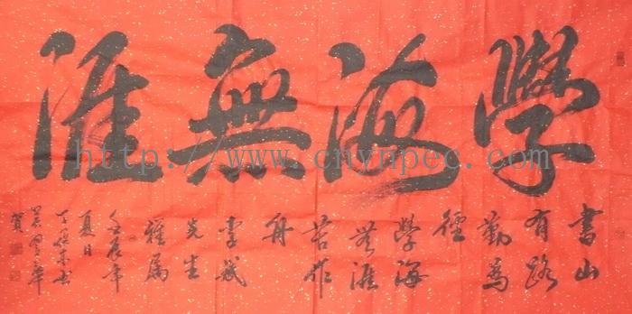 云南普洱茶信息网推荐·茶人书画家·耕田之子·丁焕东先生作品·《学海无涯》·横幅