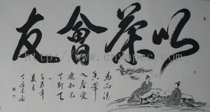 云南普洱茶信息网推荐·茶人书画家·耕田之子·丁焕东先生作品·《以茶会友》·六尺·横幅
