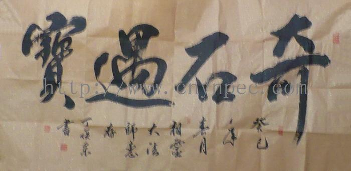 云南普洱茶信息网推荐·茶人书画家·耕田之子·丁焕东先生作品·奇石遇宝·横幅·