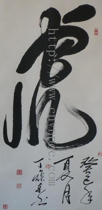 云南普洱茶信息网推荐·茶人书画家·耕田之子·丁焕东先生作品·虎字图·中堂