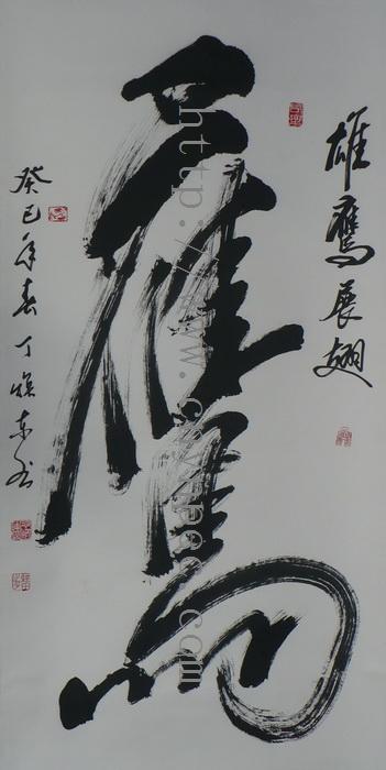 云南普洱茶信息网推荐·茶人书画家·耕田之子·丁焕东先生作品·雄鹰展翅·中堂