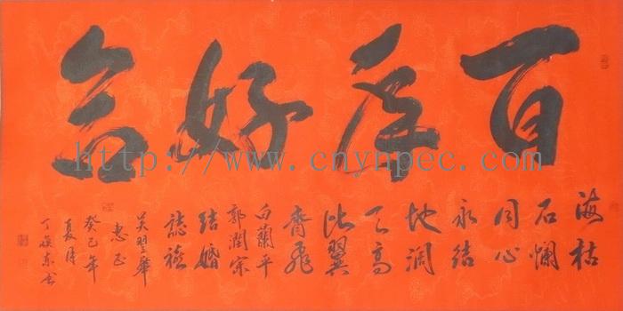 云南普洱茶信息网推荐·茶人书画家·耕田之子·丁焕东先生作品·百年好合·横幅
