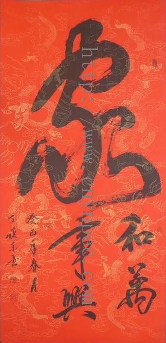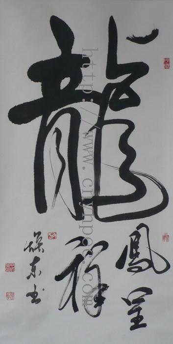 云南普洱茶信息网推荐·茶人书画家·耕田之子·丁焕东先生作品·龙凤呈祥·中堂