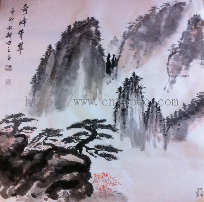 云南普洱茶信息网推荐·茶人书画家·耕田之子·丁焕东先生作品·山水图·斗方3