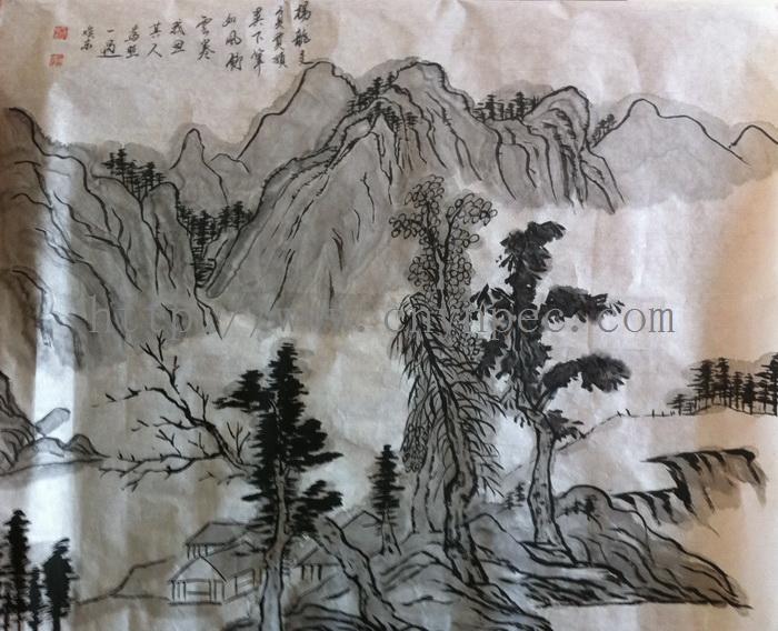 云南普洱茶信息网推荐·茶人书画家·耕田之子·丁焕东先生作品·山水图·斗方1