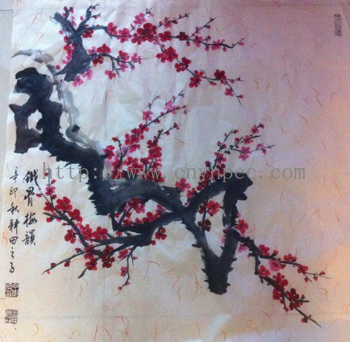 云南普洱茶信息网推荐·茶人书画家·耕田之子·丁焕东先生作品·冬梅图·斗方1