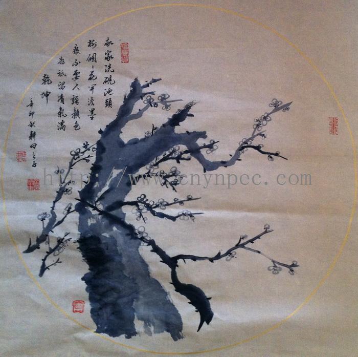 云南普洱茶信息网推荐·茶人书画家·耕田之子·丁焕东先生作品·扇圆梅套图·中堂