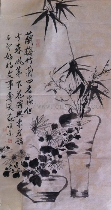 云南普洱茶信息网推荐·茶人书画家·耕田之子·丁焕东先生作品·蘭梅竹菊图·中堂1